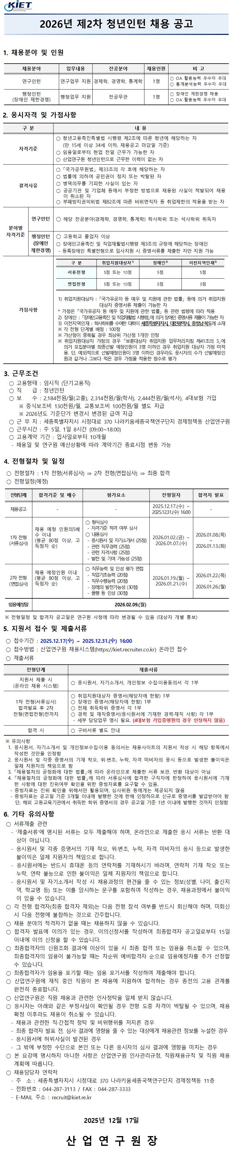 산업연구원에서 함께 일할 인재 채용공고