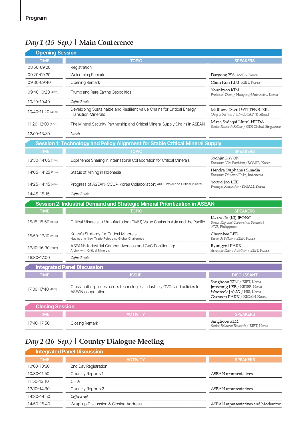 The first day featured keynote speeches and sessions on topics including: rare earth geopolitics, sustainable and resilient value chains for the energy transition, outcomes of ASEAN–Korea collaboration projects, the demand for critical minerals in Asia-Pacific manufacturing, Korea’s strategy for navigating new trade rules, and ASEAN’s industrial competitiveness in connection with global value chains.