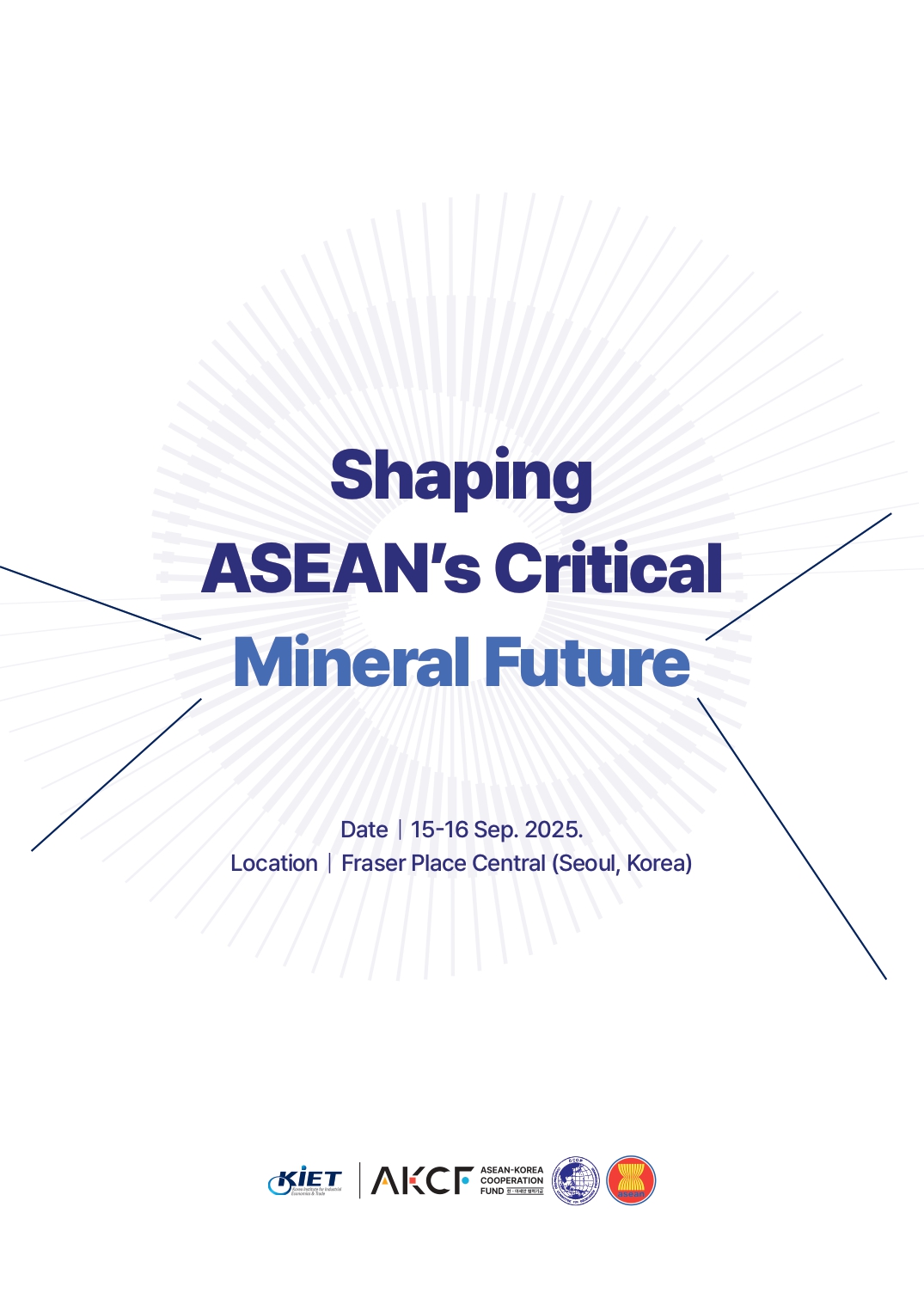 | 본문요약 | ○ 일시: 2025. 9. 15(월)~16일(화) ○ 장소: 서울 프레이저 플레이스 센트럴 서대문홀 ○ 주최: 산업연구원(KIET)과 아시아지질자원위원회(CCOP) ○ 후원: 한-아세안협력기금(AKCF) |
